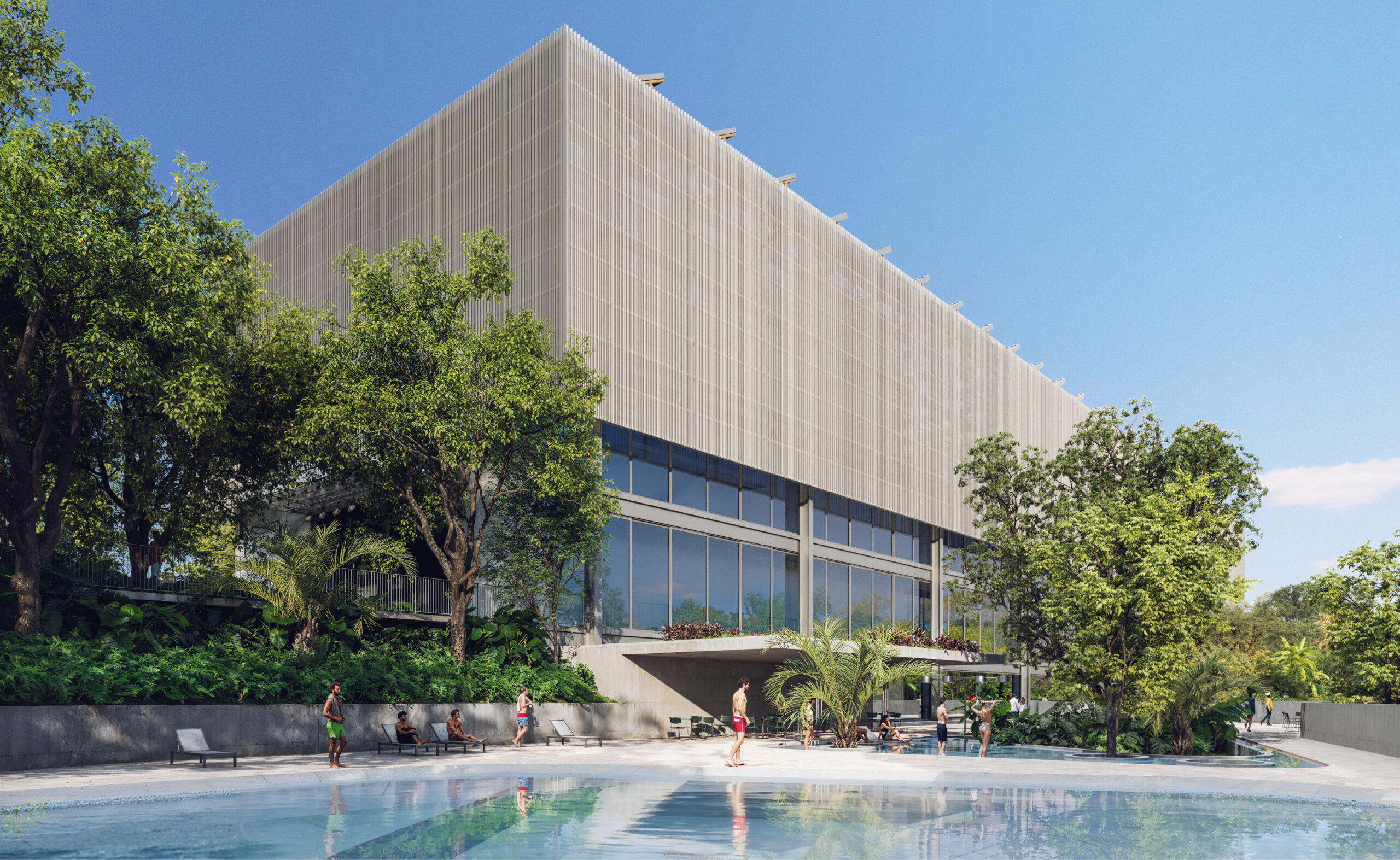 Que a convivência seja um espaço de liberdade e intensidade, coração do projeto, assim como as águas, diversificadas por diferentes sensações, em tanques, praças e equipamentos, cobertas ou ao ar livre.